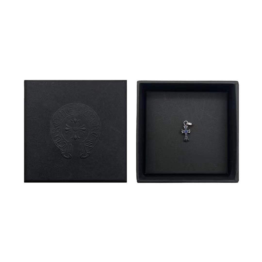 Chrome Hearts 18K White Gold Blue Saph Babyfat Cross Charm Pendant - SHENGLI ROAD MARKET