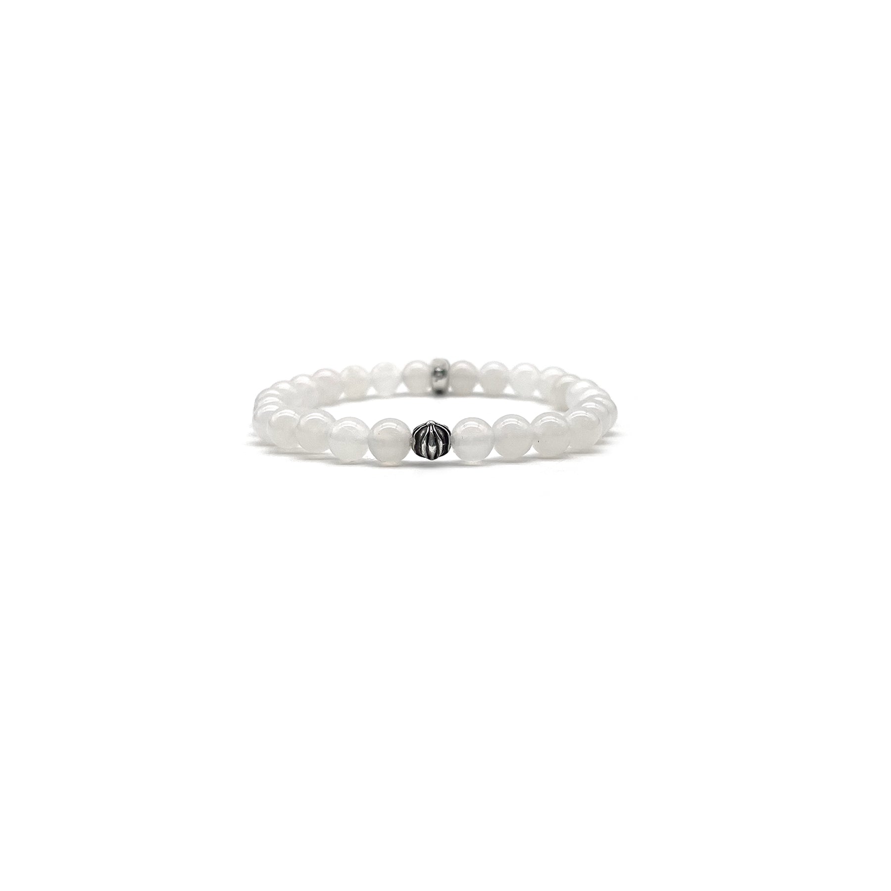 Chrome Hearts 6mm Beaded White Agate 2 Silver Cross Bracelet - SHENGLI ROAD MARKET