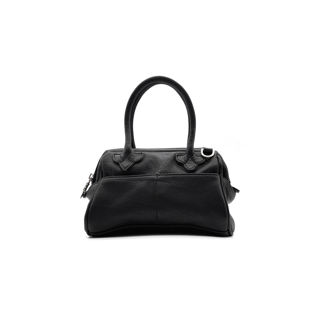 Leather Cross Patch Black Mini Bowling Bag
