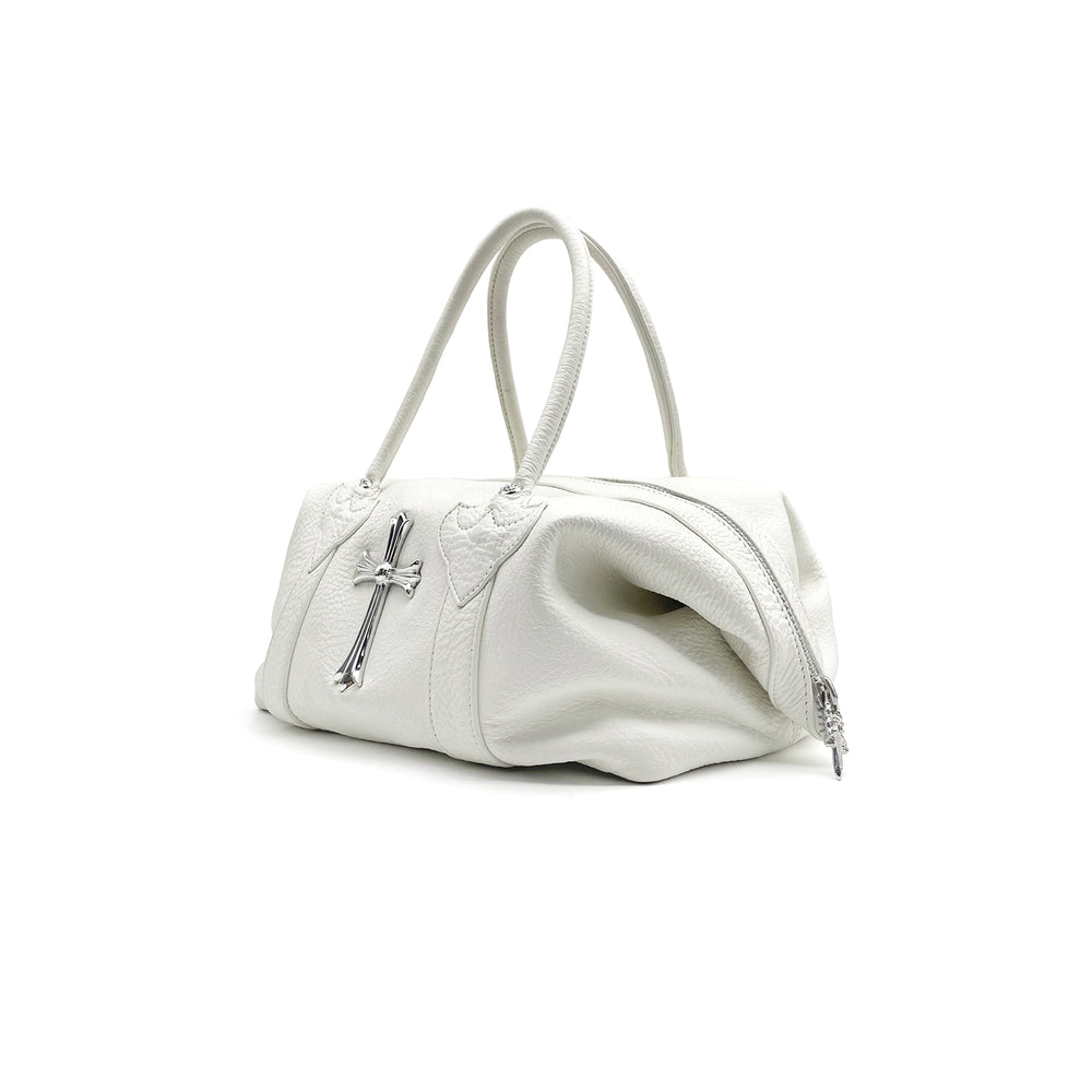 ホワイト レザー モニカ バッグ シルバー クロス ロゴ