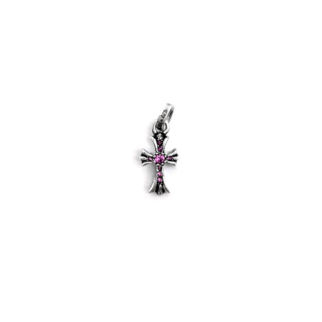 Silver Pink Saph Babyfat Cross Charm Pendant