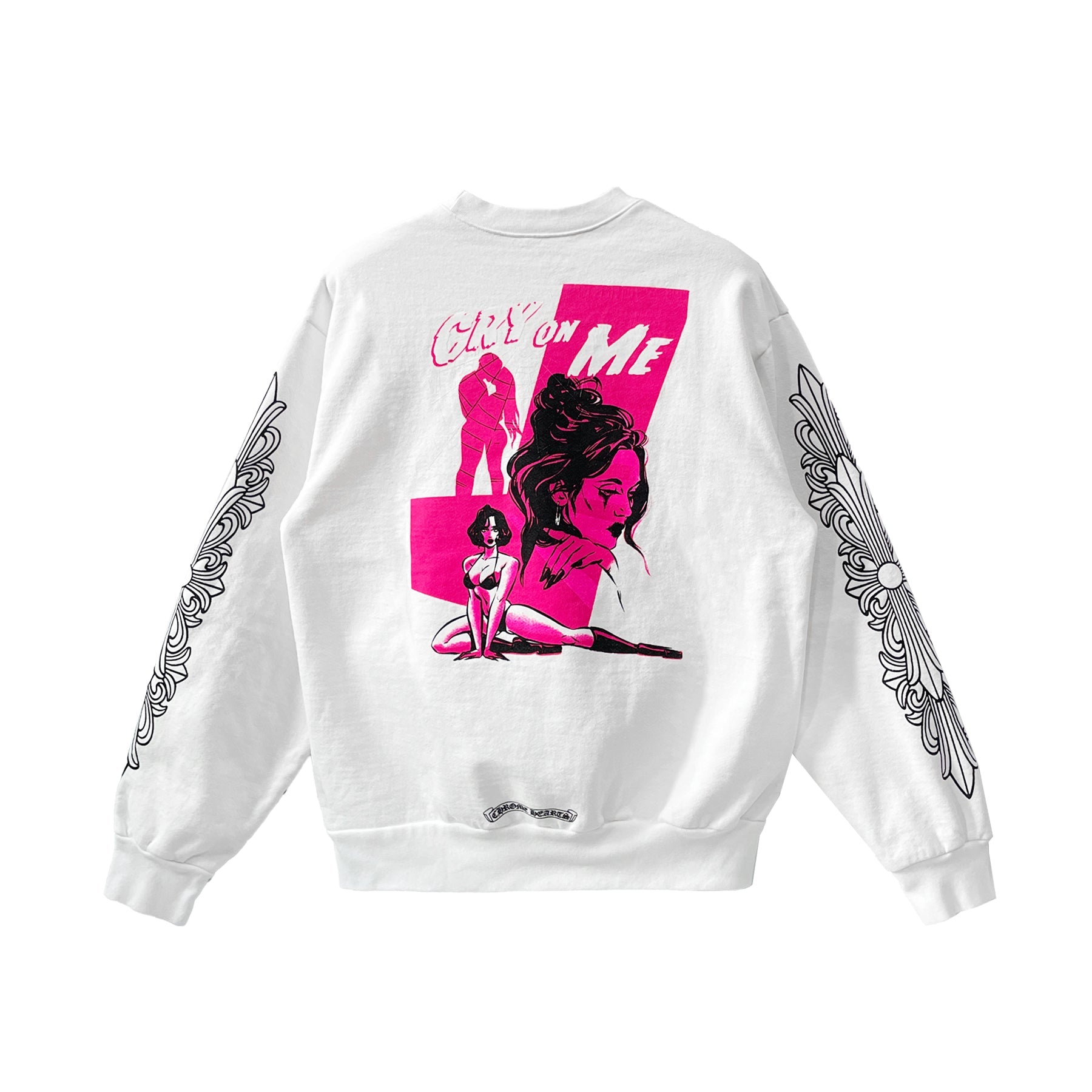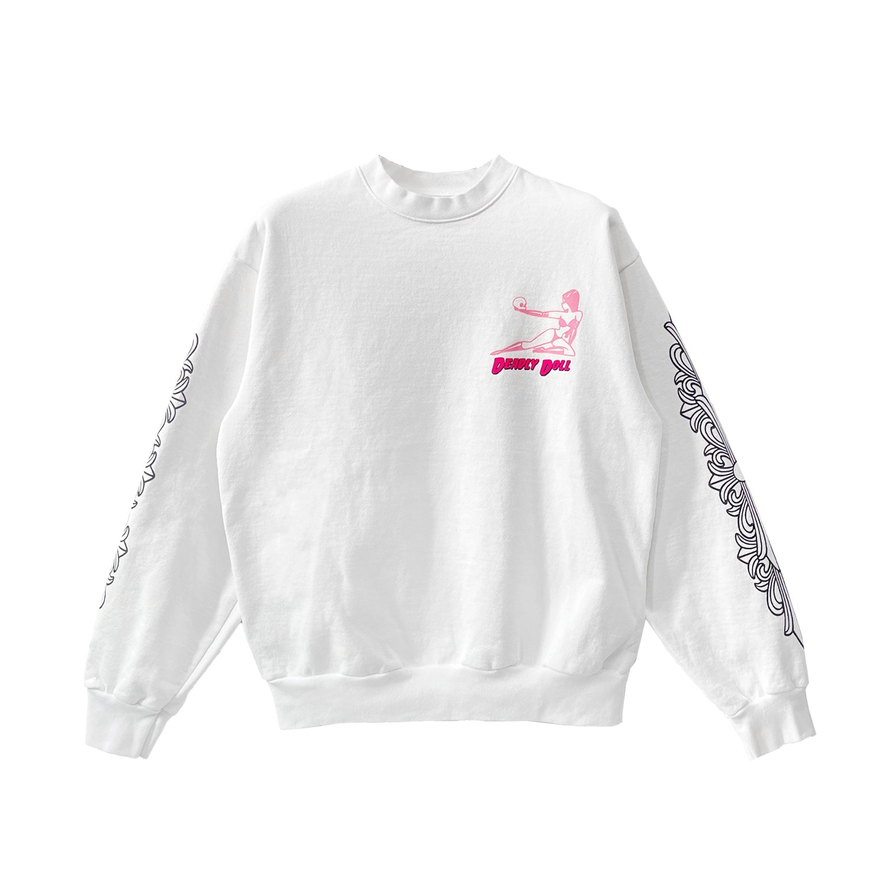 Deadly Doll Graffiti Floral Sleeve White Crewneck Sweatshirt