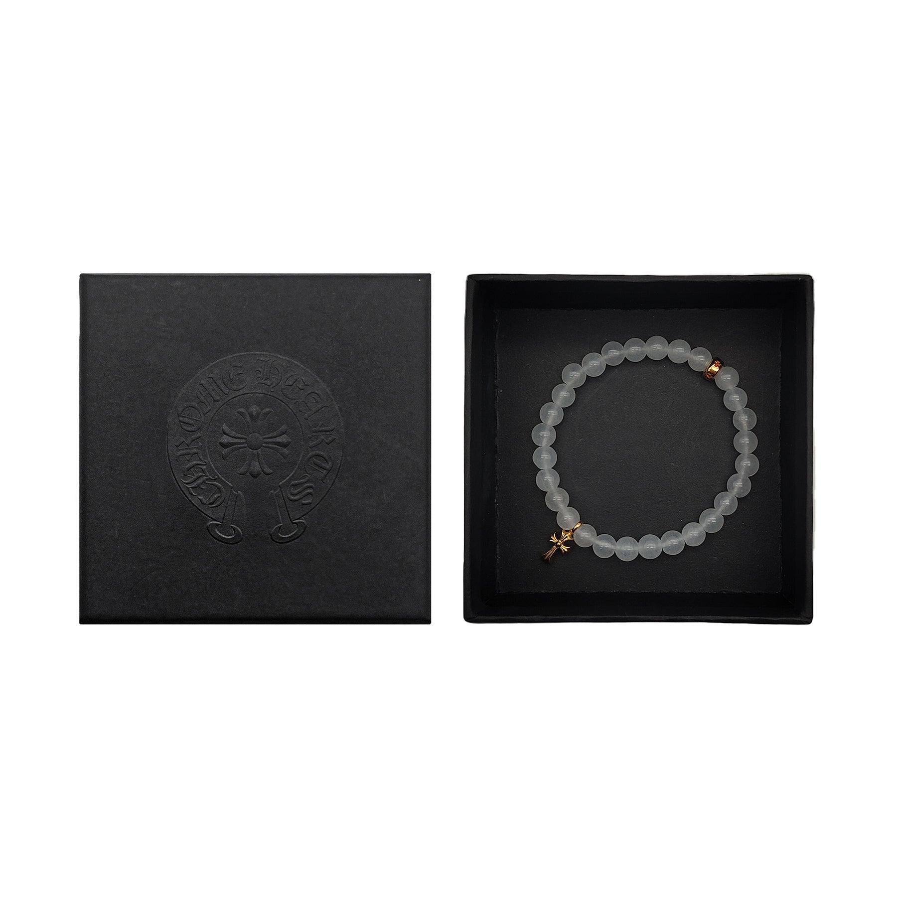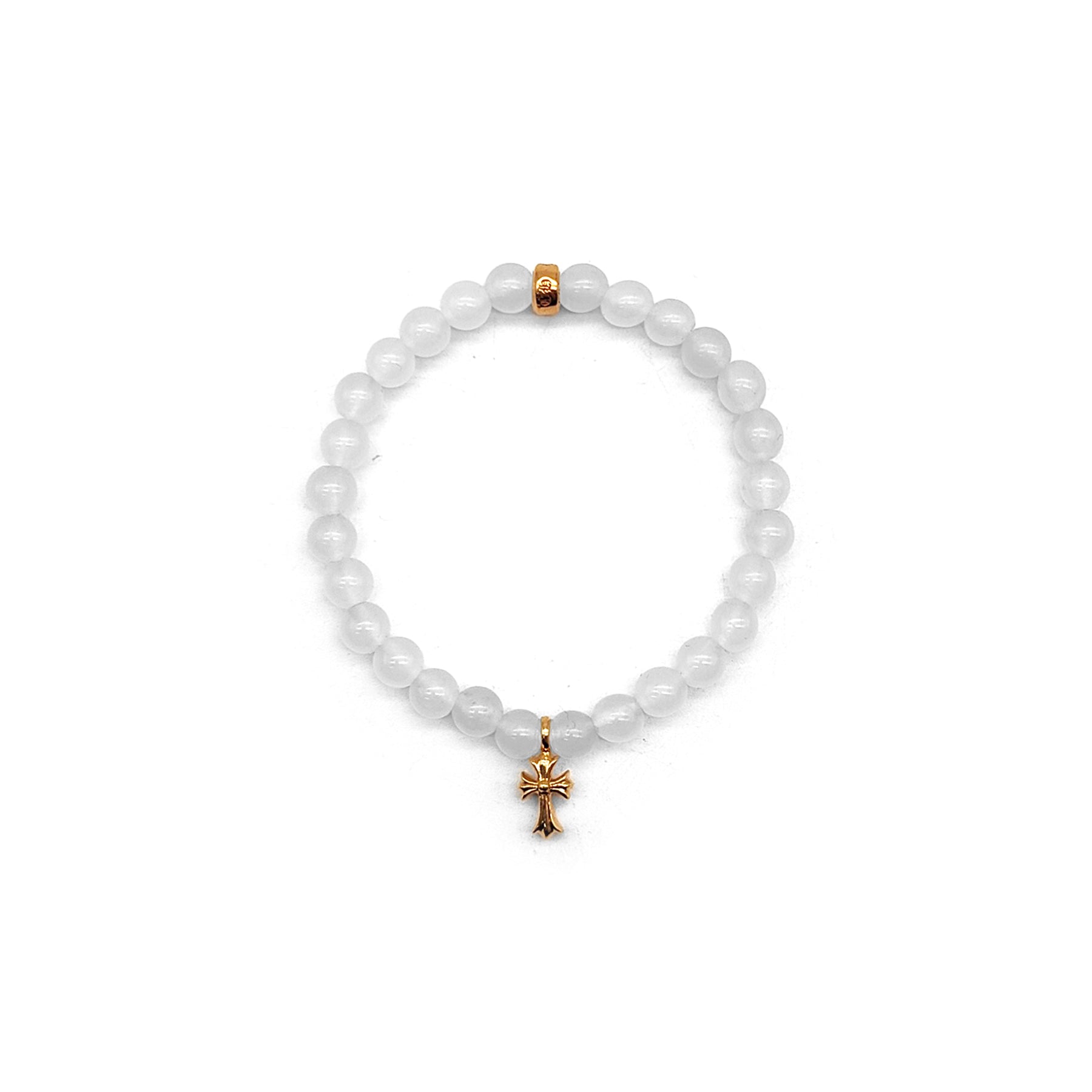 크롬하츠 6mm 화이트 아게이트 22K 골드 크로스 참 비즈 팔찌