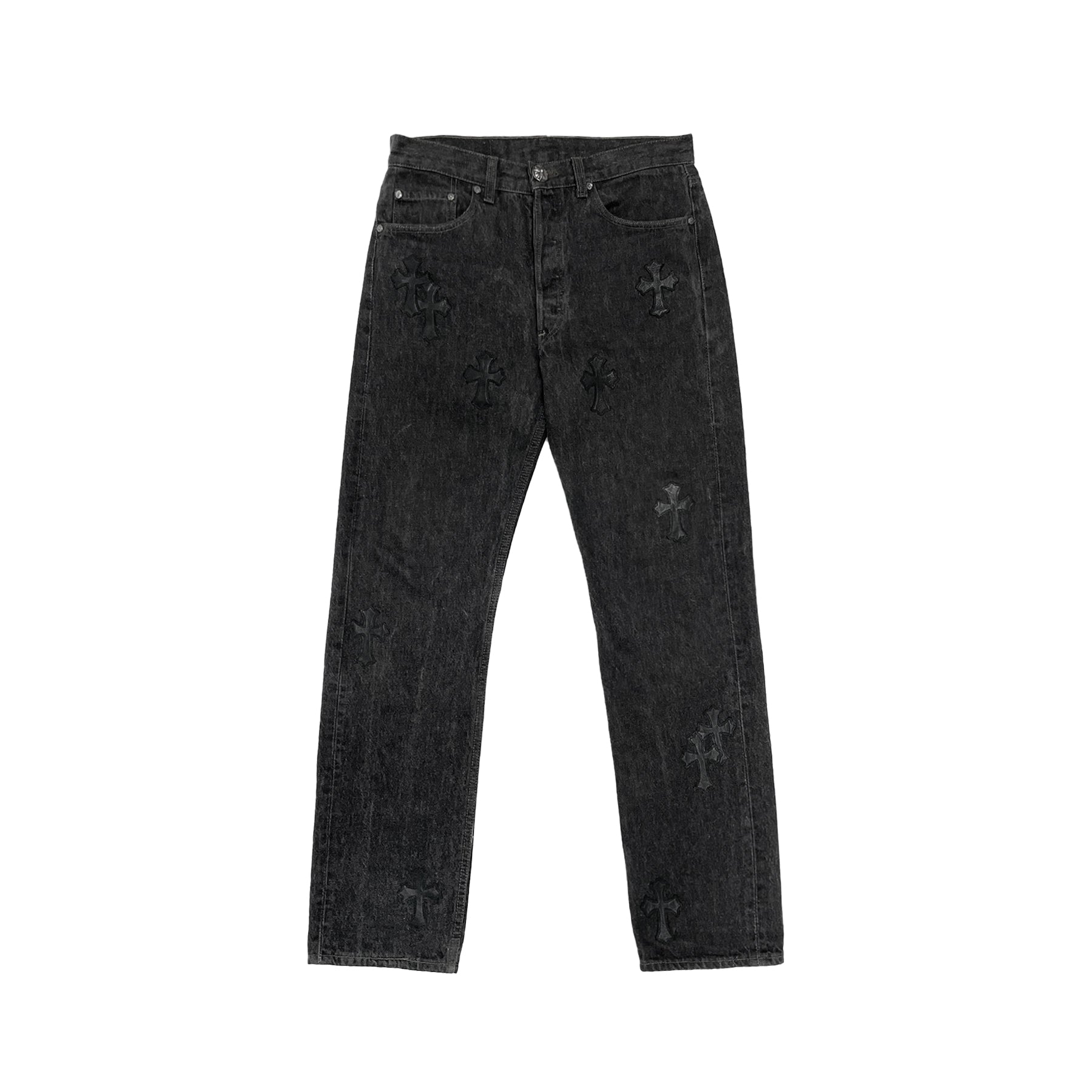 Levi's 501 Black Leather Cross Patch Jeans