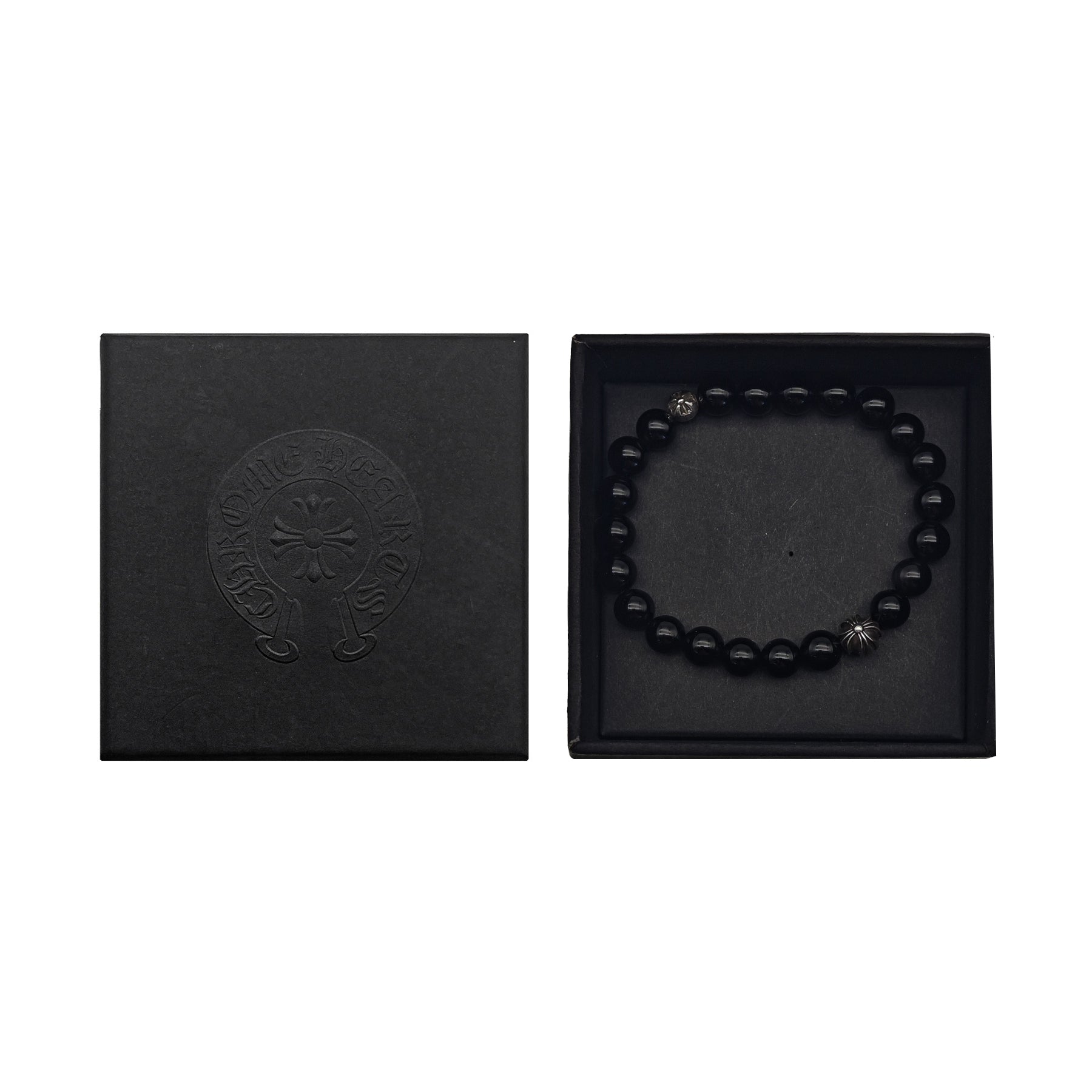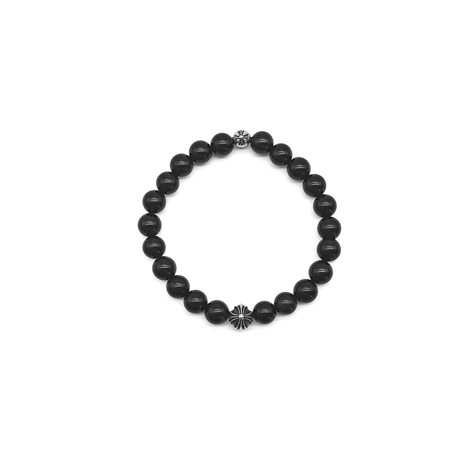 Chrome Hearts 8mm Obsidian Double Silver Cross Bracelet - SHENGLI ROAD MARKET