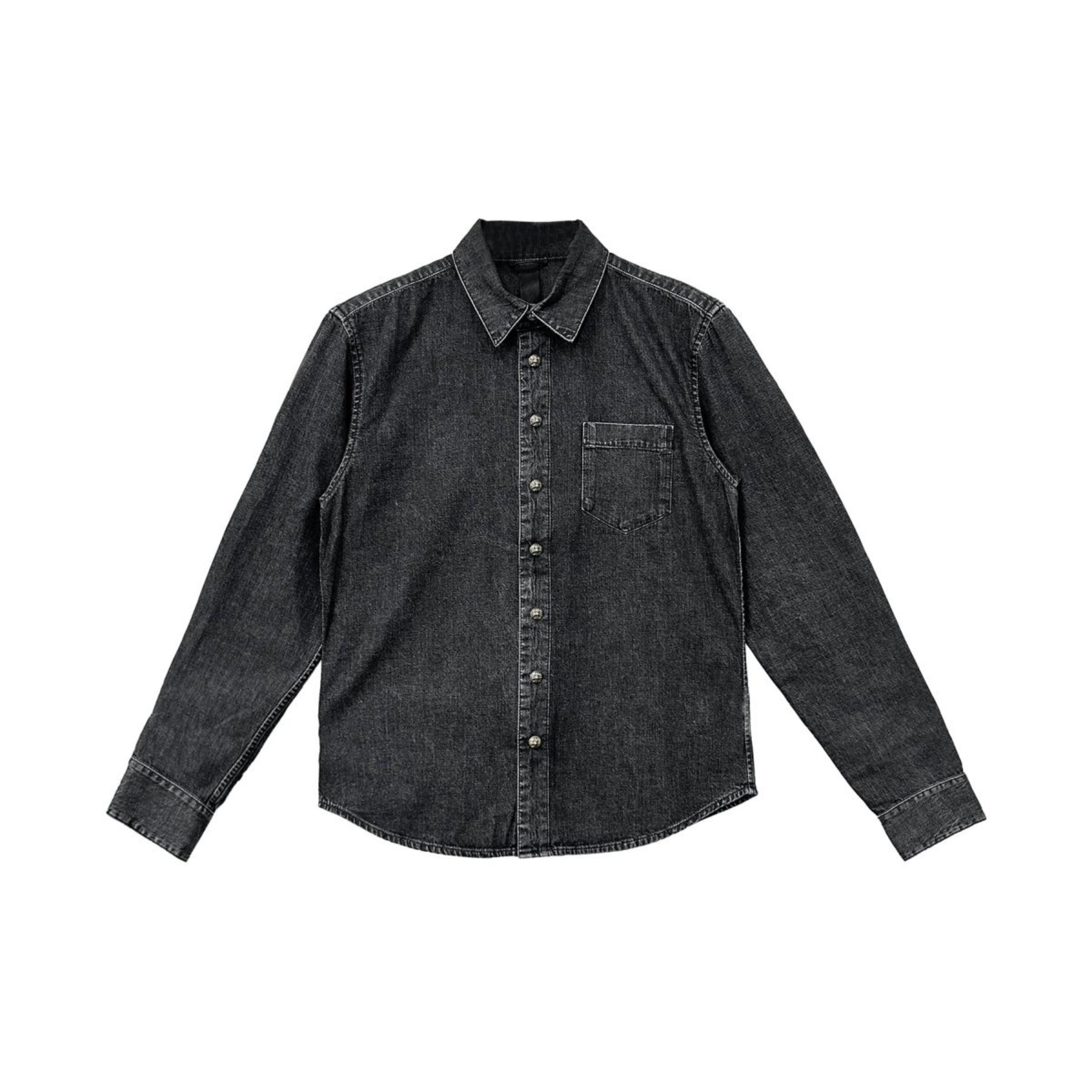 LOOSE END Leather Cross Patch Washed Grey Denim Shirt